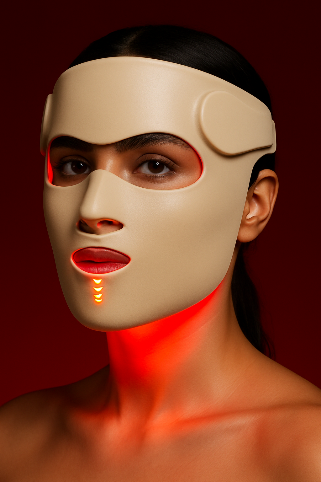 العلاج بالضوء الأحمر وتحت الأحمر (بطول موجي 633، 830 نانومتر*) يعزّز إنتاج الكولاجين الطبيعي في البشرة لشدّ الجلد وتقليل التجاعيد العميقة، للحصول على بشرة أكثر شبابًا.